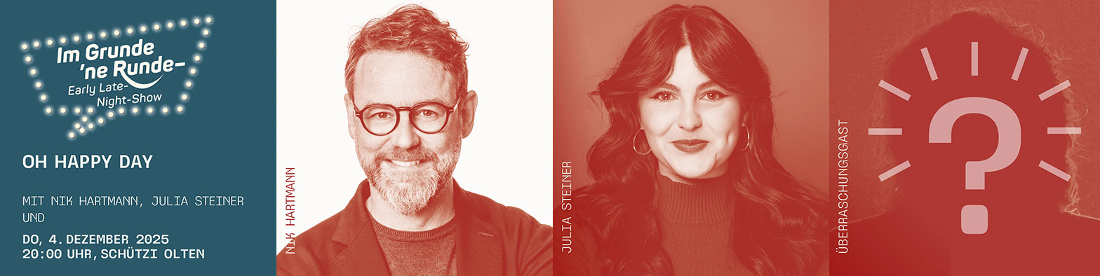 Mit dem Olten-Liebhaber und ehemaligen Late-Night-Host Dominic Deville, Sängerin Heidi Happy sowie Kabarettistin Rebekka Lindauer. Dominic Deville wurde zu seinem Wissen über Olten getestet und schliesslich vom Stadtpräsidenten Thomas Marbet als Botschafter von Olten bestätigt. Heidi Happy liess uns träumen mit ihrer schönen Musik und Rebekka Lindauer überzeugte mit ihren zwei Ausschnitten aus ihrem aktuellen Solo-Programm.